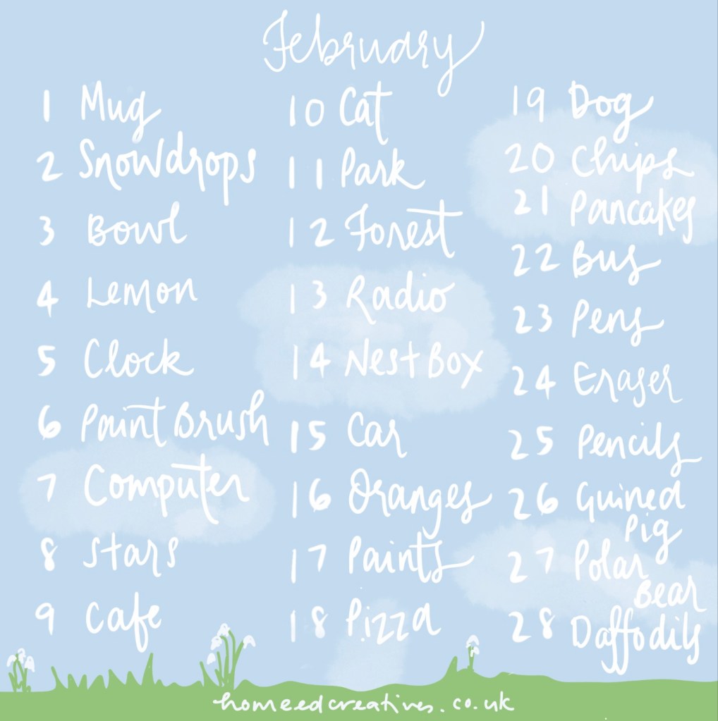There are a number of ‘special’ days in February. Not just Valentine’s Day. It is Safer Internet Day – 7th, World Radio Day – 13th, the start of Nest Box Week – 14th and International Polar Bear Day – 27th. I have highlighted these days on the Drawing Prompt list, and by clicking on underlined ‘days’ will lead you to the various related sites. You will find information and there are often resources which your children might enjoy,