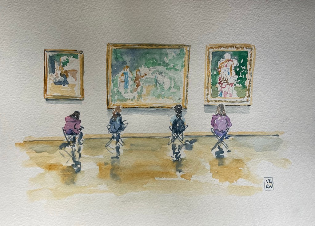 We had been covering “Perspectives” in our weekly sessions, practicing its application as well as looking at a variety of paintings together Online – some were ones that they were going to see at the Art Gallery we were going to.